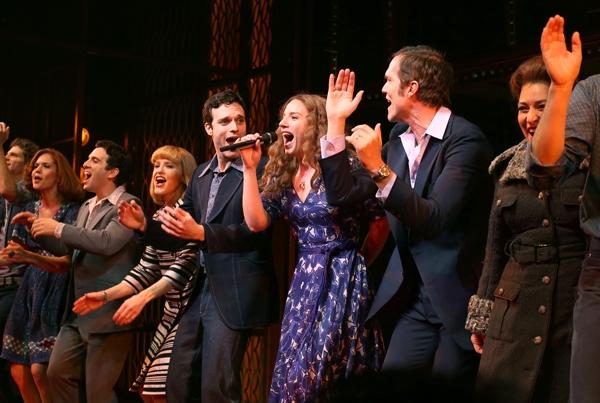 It's tough to imagine what kind of event could put a high-powered crowd including Phil Collins, Nathan Lane and Clive Davis under the same roof in New York while most of the entertainment world was gathered on the opposite coast for the Golden Globes. Until, that is, you factor in the timeless appeal of Carole King. Those showbiz icons and more turned out last night for the Broadway opening of Beautiful: The Carole King Musical at the Stephen Sondheim Theatre. The show chronicles King's early career, from her time as half of the heroically hit-making Sixties songwriting team with her then-husband Gerry Goffin to her emergence as a phenomenally successful solo singer-songwriter in the Seventies.