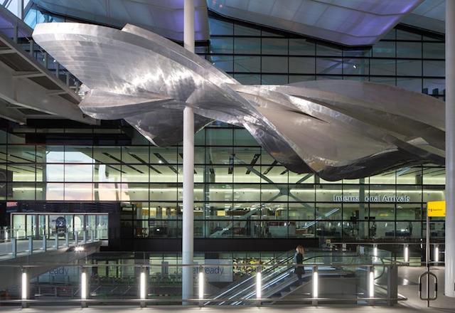 The sculpture is 80 metres long, weighs 77 tonnes and is said to be the largest privately funded sculpture in Europe. The work represents the movements of a stunt plane, captured in time and space and aluminium. We think it looks bloody impressive from the images, which is just as well given that Heathrow paid £2.5 million for it.