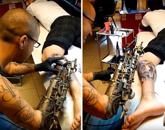 Take a look below to see what we’re talking about. Amazed? Confused? I think we’re both. Tenet, who is based in Lyon, France, lost his arm 22 years ago. He received the world’s coolest prosthetic courtesy of French artist JL Gonzal, who modified an existing arm prosthesis to accommodate the tattoo machine.